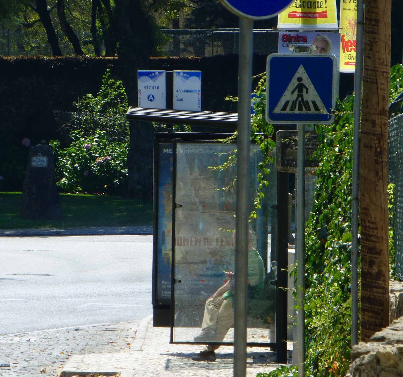 D. Maria do Céu, descansou as pernas na paragem do Ramalhão, pouco passava do meio-dia, viu descerem logotipos azúis e amarelos, em serviço pela certa, sem que olhassem para ela - munícipe pagante - que viria a retomar o caminho a pé.