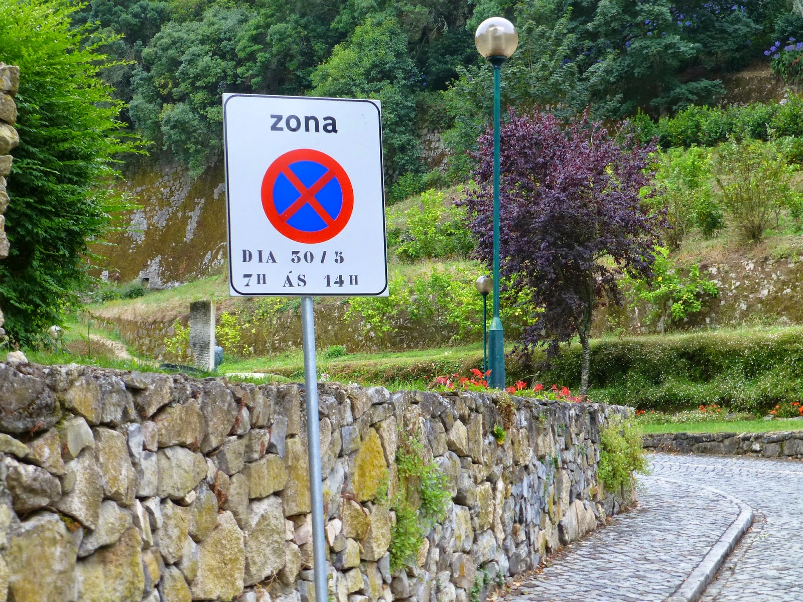 Entrada do parque de Estacionamento do Rio do Porto, junto ao Centro Histórico: Vê-se que no dia 30/5, entre as 7h e 14 horas, era Zona de Paragem e Estacionamento Proibido. Passados mais de 2 meses, ninguém ainda se apercebeu - até nos serviços ligados à colocação do sinal - que devia ser retirado?