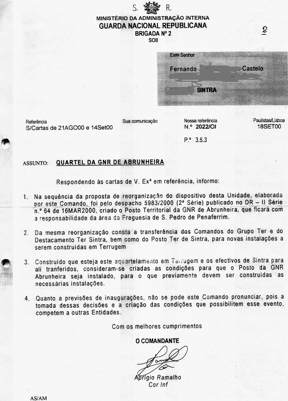 E, sendo de Sintra, não o tentem desviar como sendo da Abrunheira.