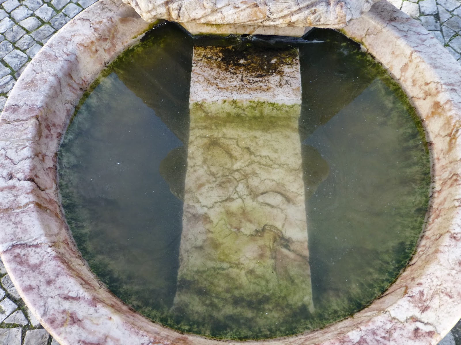 A fonte, mesmo junta da paragem onde os visitantes descem dos autocarros, também apresenta o ar imundo que a fotografia atenua.