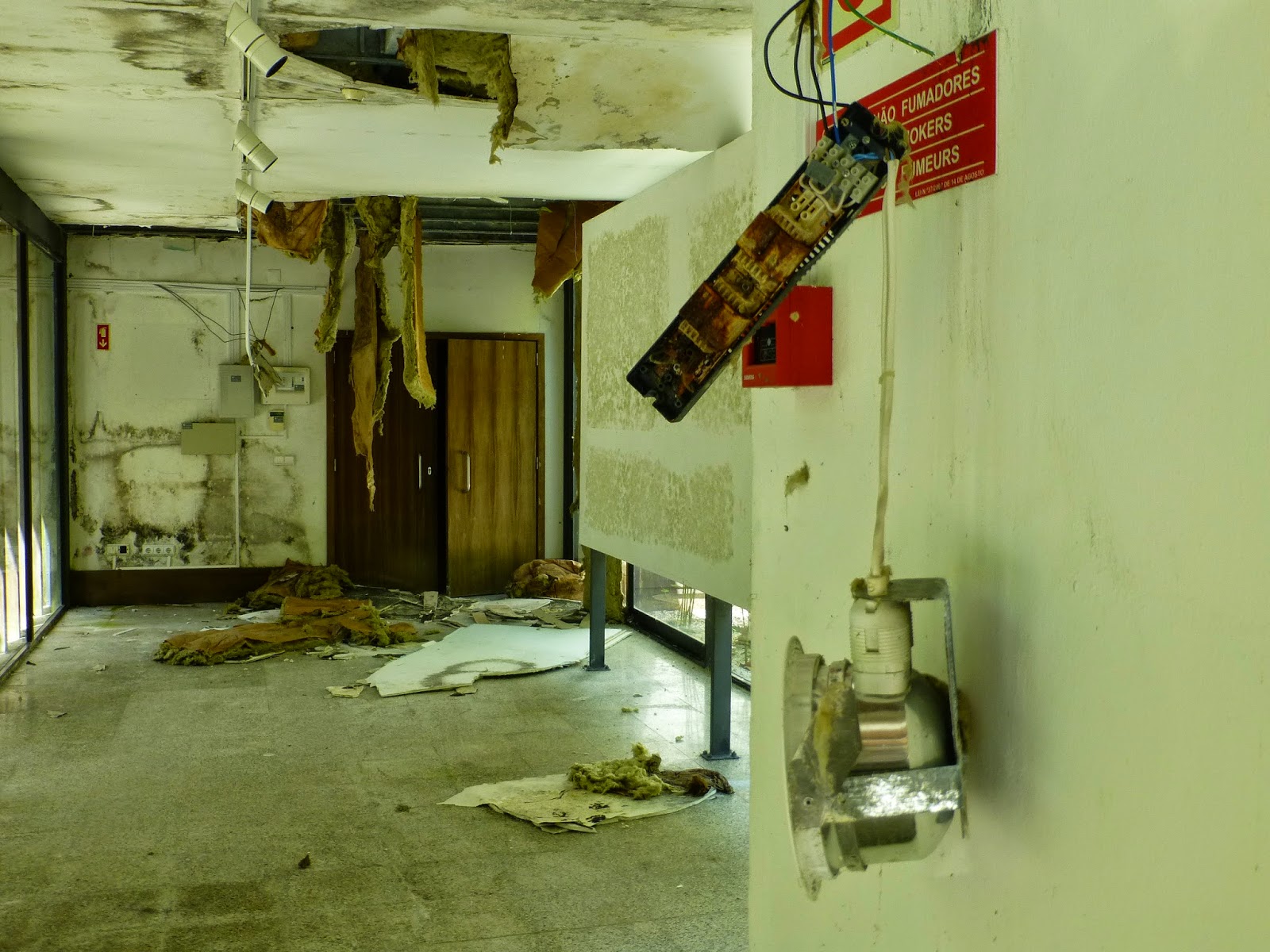 Na passada segunda-feira o espaço foi limpo da lã de vidro que pendia e do chão (ficou a lanterna)